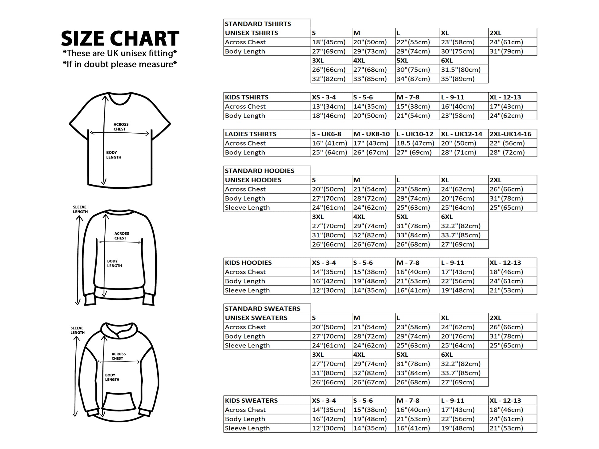 Available in a variety of sizes. Check our size chart to find your perfect fit!